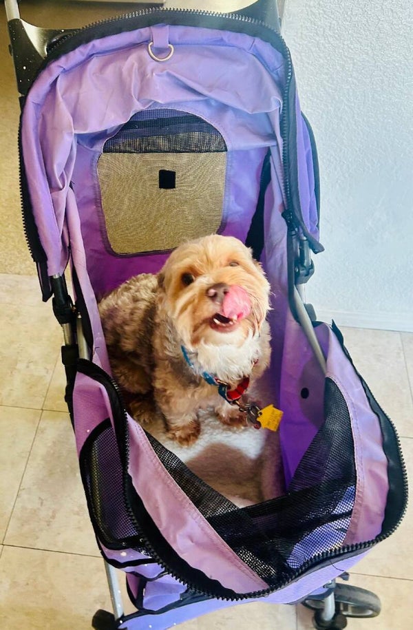 Folding Dog Jogger Stroller with Storage Basket & Breathable Mesh, Easy to Walk Travel Carrier, Purple Click link to Buy: https://amzn.to/42X6JBM