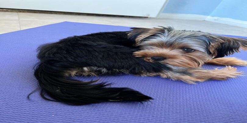 A Yorkie puppy displaying signs of suffering from hypoglycemia will become drowsy, limp and lifeless, with glassy unfocussed eyes.